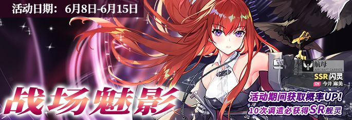 指挥官可在「活动调遣-战场魅影」中使用「紧急调遣证」获取限定SSR舰灵「闪灵」,活动期间该角色的获取概率也将大幅提升!