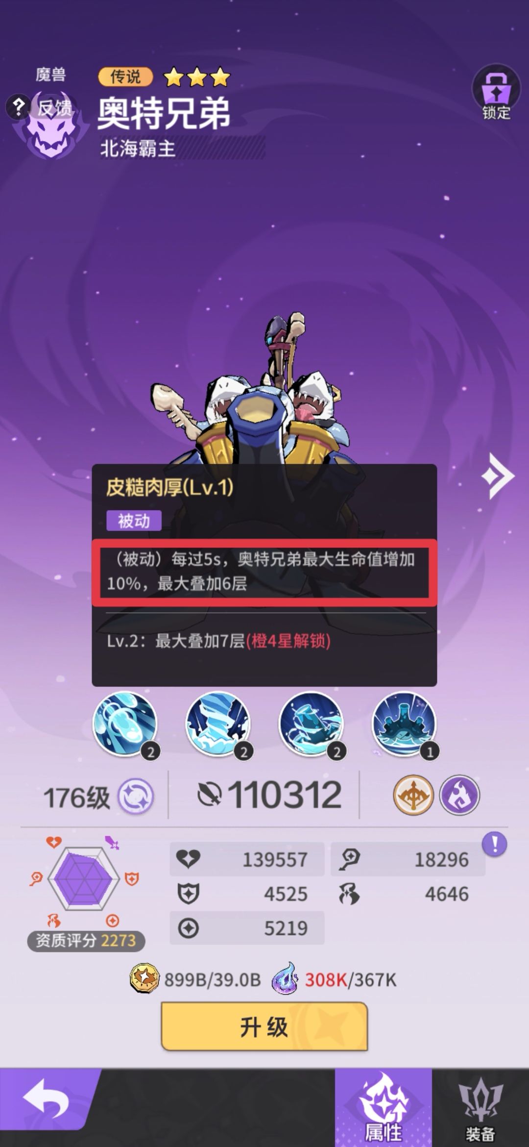 再加上这游戏资源卡得很死(升级、升星需要的资源都很难攒),往往你只能拉一个大哥起来一拖四,也只有在大哥的星级把等级卡死的时候才会去养四个小弟。所以在前期找一个合适的大哥(比如奥特兄弟),对后续的整个游戏体验的影响非常大。