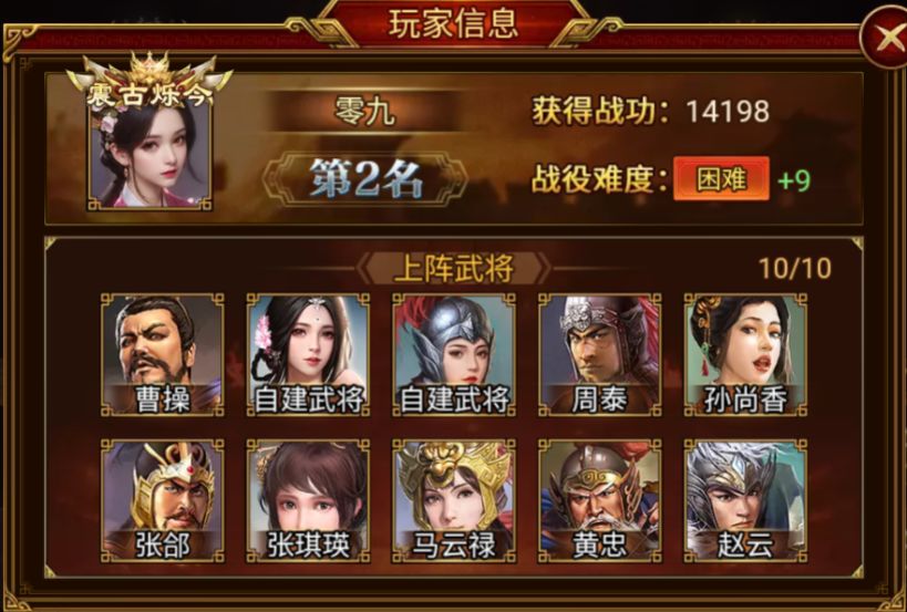 赢得第二位的是 零九 军团,成功攻破 困难+9。