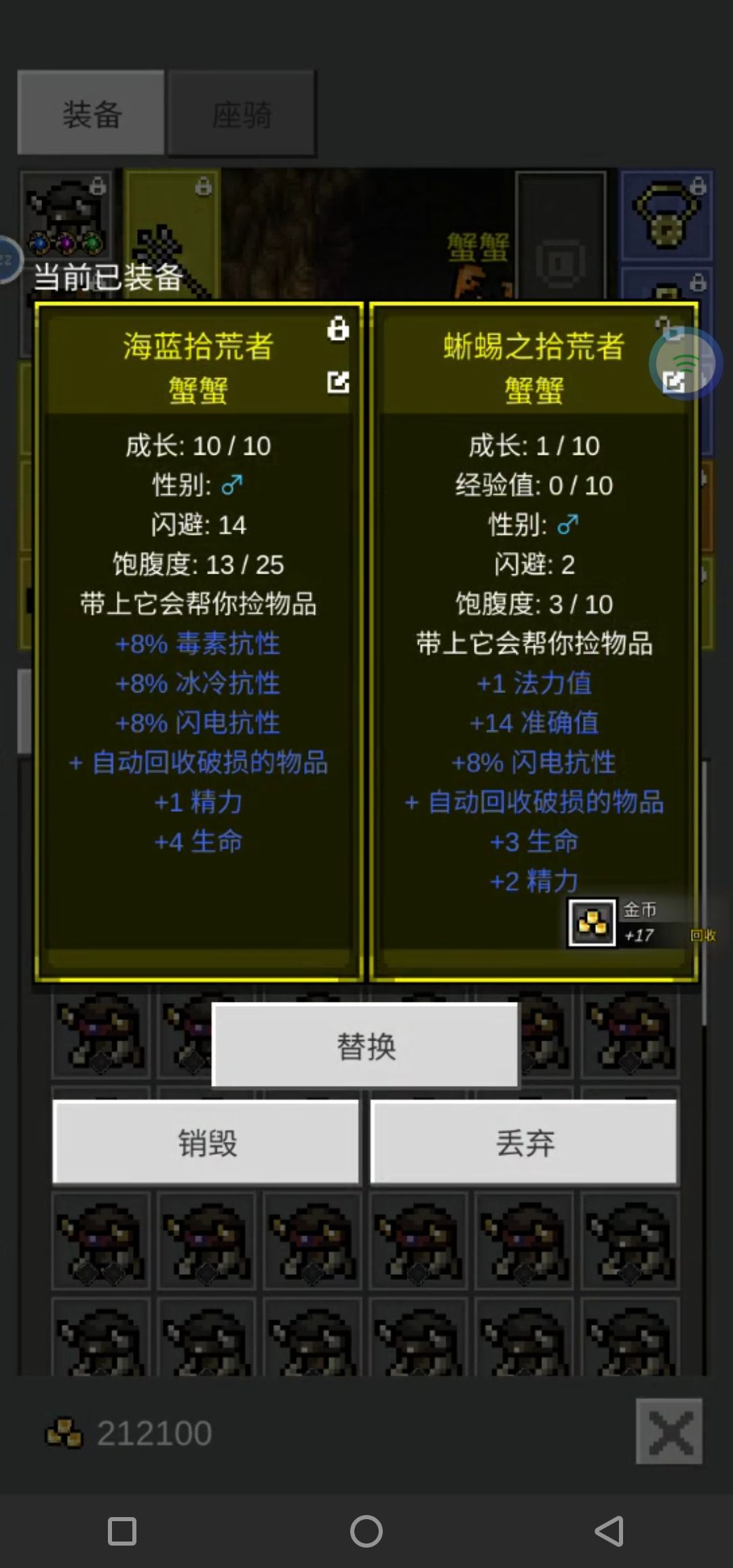 开局送的宠物是个白板,用处不大,唯一的作用就是帮你捡装备了。后续打怪,钓鱼,挖草药,挖矿可以搞到蓝蛋,金蛋。前期的宠物能有一个自动回收破损物品就已经够用了(如图⑤)