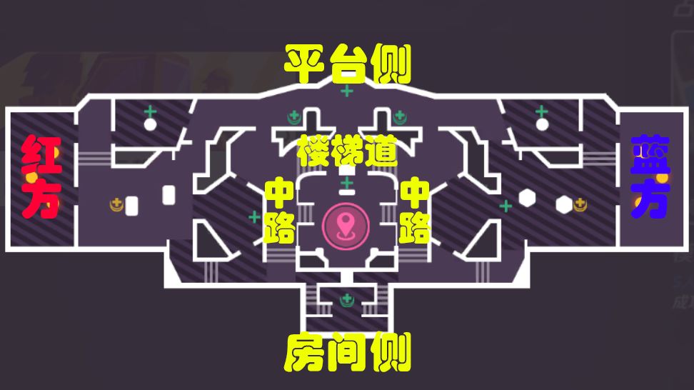 房间平台点位位于房间内平台,前锋英雄可以观察房间侧敌方,敌方靠近时,对敌方进行突袭