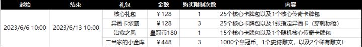 本周(6月6日-6月13日)礼包更替说明如下图