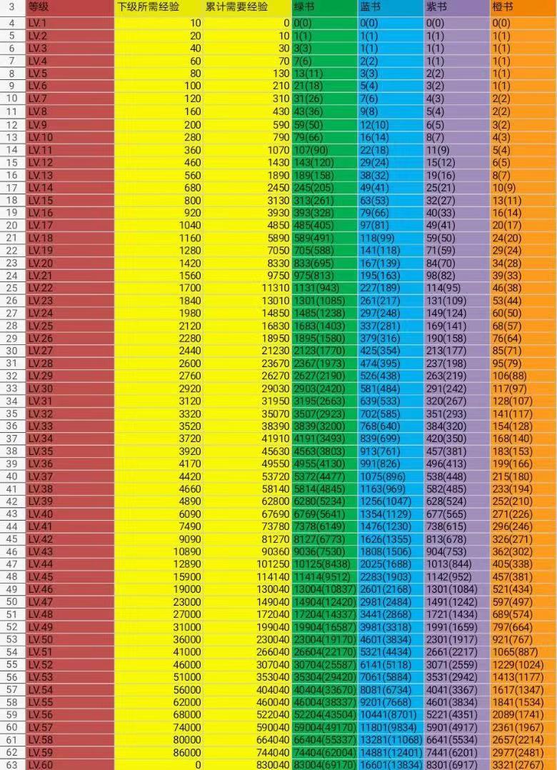 2.以下是军团升级所需经验,可计算需要多少本经验书升级军团。