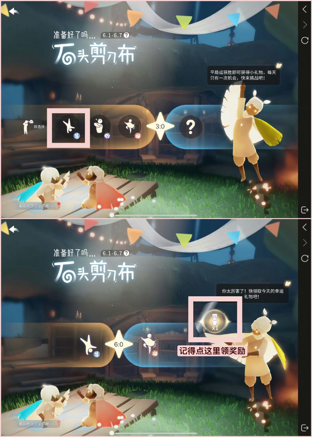 🎈儿童节小精灵活动:前往精灵与小光猜拳比赛,今日出【剪刀】可胜利,获得螃蟹恶作剧魔法*1