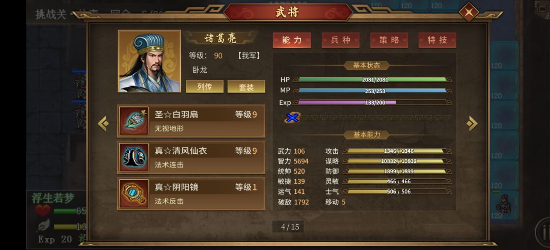 左路必须配置法术攻击,主力是万人诸葛亮,万人张飞(圣吞武器),医仙孙乾(未培养,带个一级粮车),庞统(未培养)