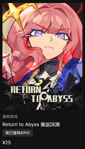 在epic商城上搜索重返深渊即可找到游戏主页面,游戏本体售价为25人民币。
