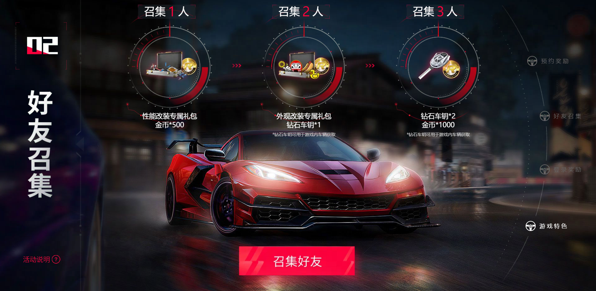 召集到的好友越多,奖励越丰厚,车手本人也可以助力好友解锁奖励,共赢大礼~