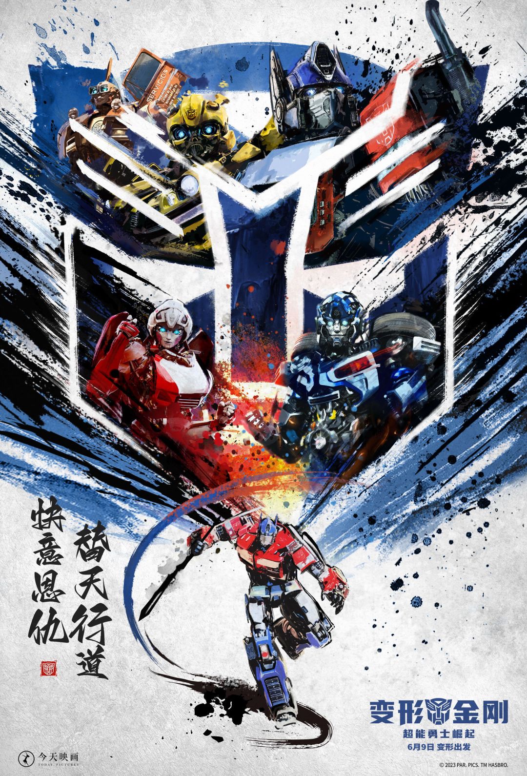 今日(6月1日)《变形金刚7:超能勇士崛起》水墨武侠风海报发布,汽车人、巨无霸、恐惧兽三大阵营、三足鼎立,战魂觉醒。