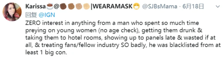 说实话,你的确可以说Chris Avellone是个老色批,但他所做的一切总归没有脱出“你情我愿”的范畴。反倒是Karissa的胆量和操作有点离谱,仅凭着一套推特小作文就想将Chris Avellone拉下马,不过现实最魔幻的是,Karissa居然成功了。