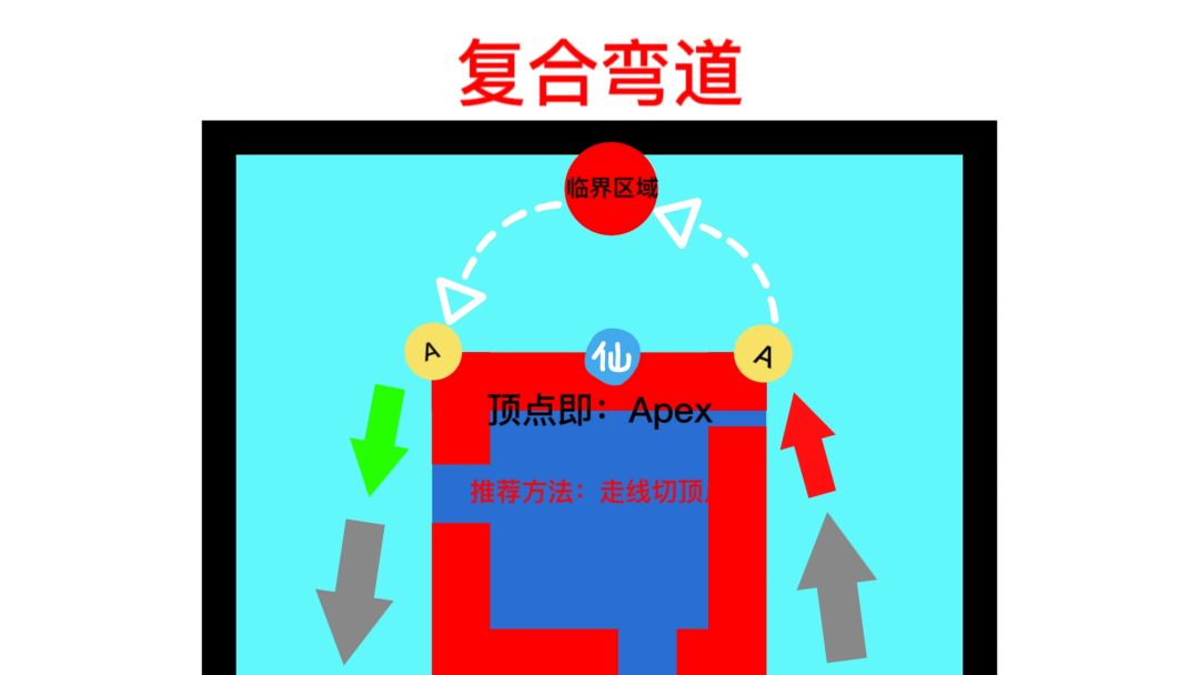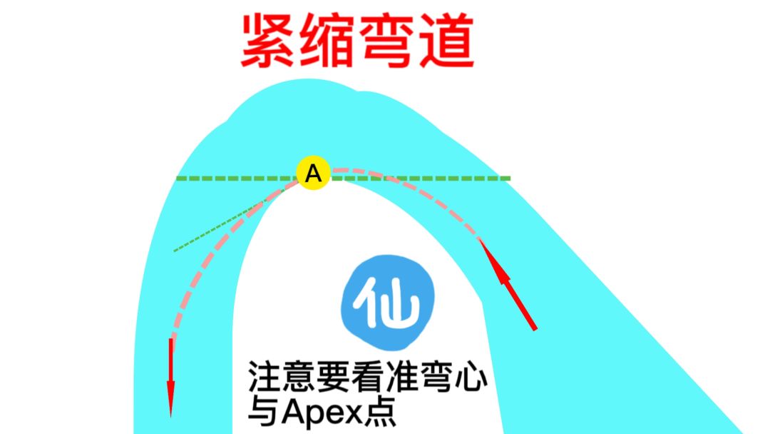 注意事项:玩家容易被弯道骗了,误以为出弯和入弯一样长,误把APEX点当临界点,造成入弯时减速过多。
