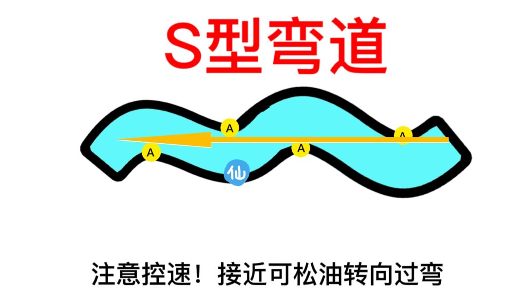注意事项:最需要精准操作的弯道了,完全不能有闪失,只有一次机会,一会定成败的弯道!