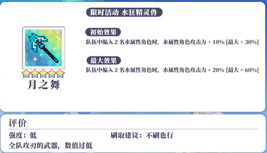 全队攻刃武器,奈何数值实在太低,只能当玩具收藏。