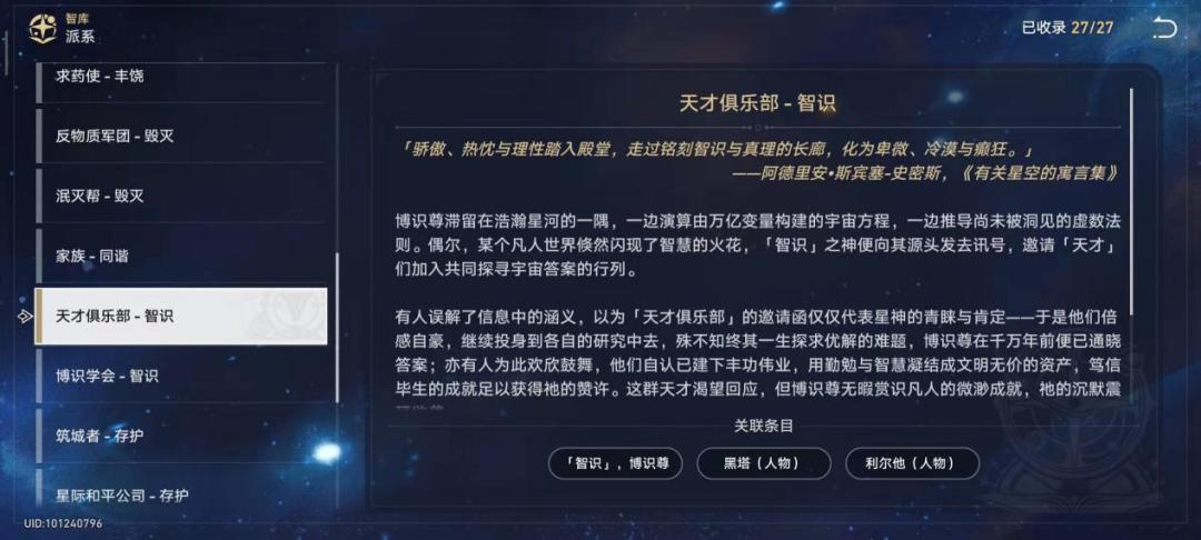 天才俱乐部是全宇宙最神秘,最超然,最不明所以的组织,受星神博识尊的恩宠。偶尔,某个凡人世界倏然闪现了智慧的火花,「智识」之神便向其源头发去讯号邀请「天才」们加入共同探寻宇宙答案的行列。但只有清晰认知到「宇宙的答案超脱凡人智慧的极限」这一结论的天才,才能挣脱俗世求知欲的桎梏,成为「天才俱乐部」的真正会员。