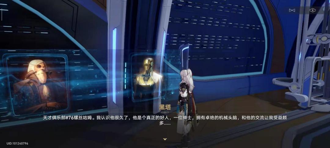 螺丝咕姆是天才俱乐部的76席,天才俱乐部的编号顺序是按照进入俱乐部时间来划分的,作为参考,黑塔是天才俱乐部83席,也就是说,螺丝咕姆在天才俱乐部是黑塔的「前辈」。有趣的是,螺丝咕姆和黑塔是老熟人,这一点游戏中早有“剧透”,我们在打模拟宇宙时会在旁边看到他的画像。