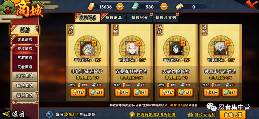 特权商店选择变成的常驻的活动了,这个就只推荐你是超影的情况下去弄忍者,不是超影不划算