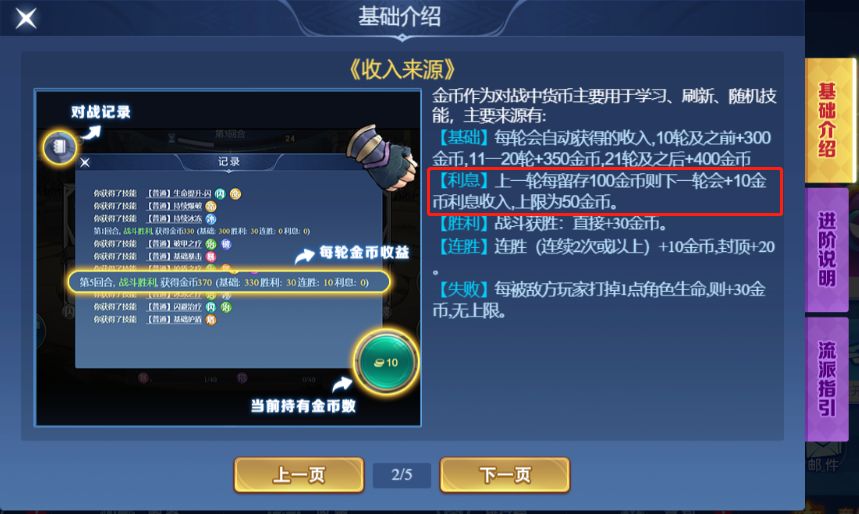 开局先不购买技能,迅速将经济攒到500之上开始吃满利息。利息的最高值就是500经济对应的50金,之后尽量保持经济在500之上。吃满利息比没吃利息,一局可以多十多个技能,血条保持在10以上就算健康,前期可卖血来达到经济最大化,后期根据实际对局进行锁血,实在打不过再花完所有金币。