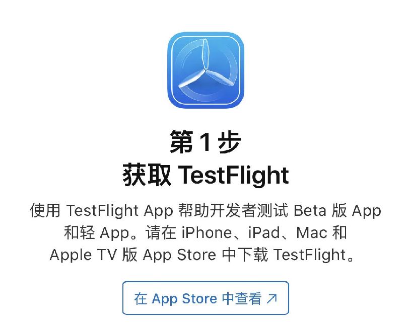 若您移动设备上已经安装TestFlight,则可跳到步骤三;