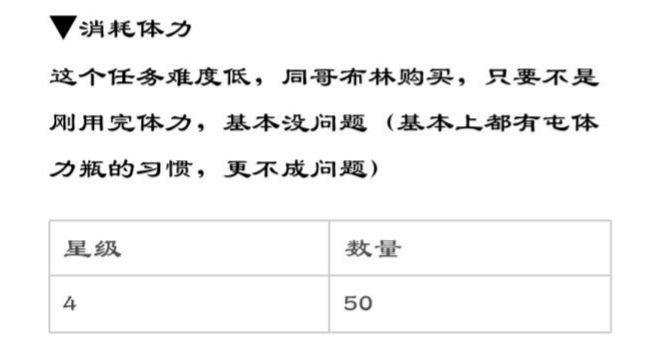 这个任务难度低,同哥布林购买,只要不是刚用完体力,基本没问题(基本上都有屯体力瓶的习惯,更不成问题)