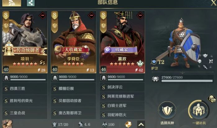 战魂项羽搭配酒馆嬴政,在【胜利号的荣光】和【三皇会战】的共同作用下,控制、输出都可以拉满,面对版本强势队伍都可以一战,遇到突击队也是55开的局面,运气好的情况下甚至可以完胜,可以说是当前版本十分强势的一套阵容。
