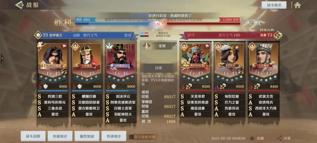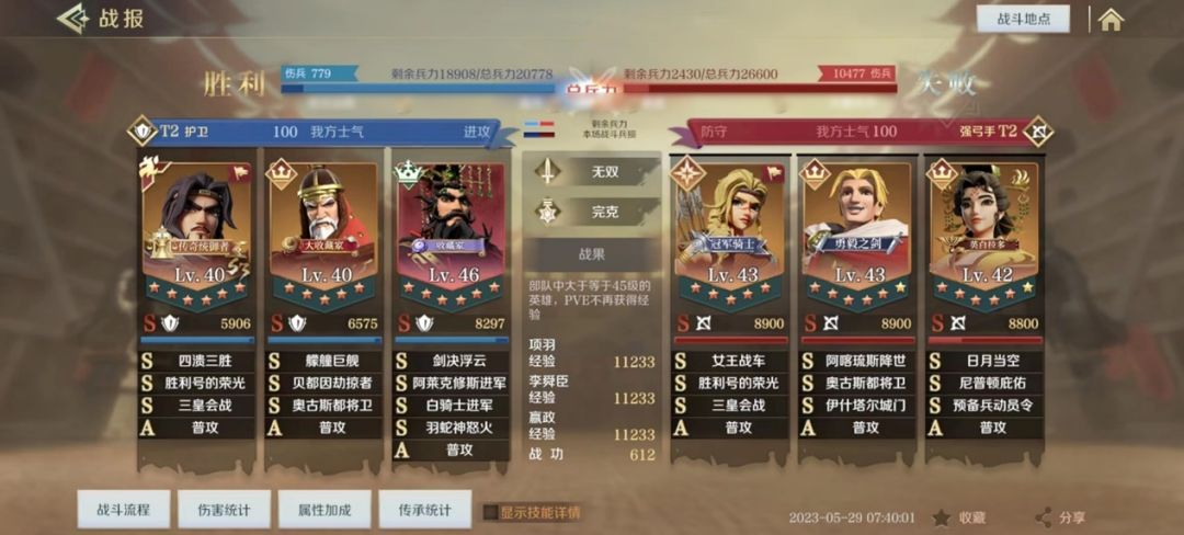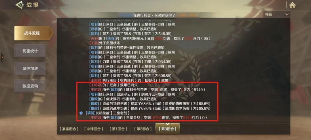 由战报可见,面对版本强势的三皇布狄卡队,三皇战魂项羽队也是丝毫不虚。