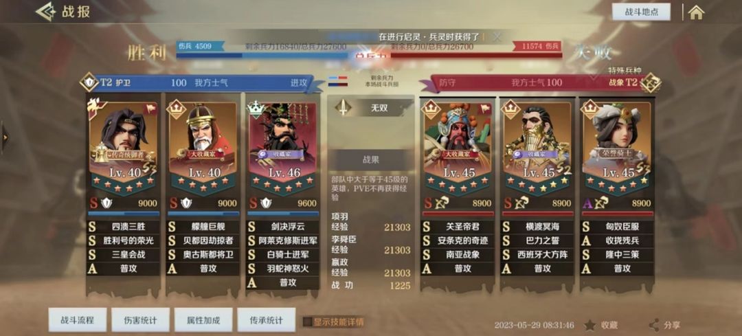 由战报可见,面对强势的安条克关羽队,三皇战魂项羽队也打出了不错的效果。