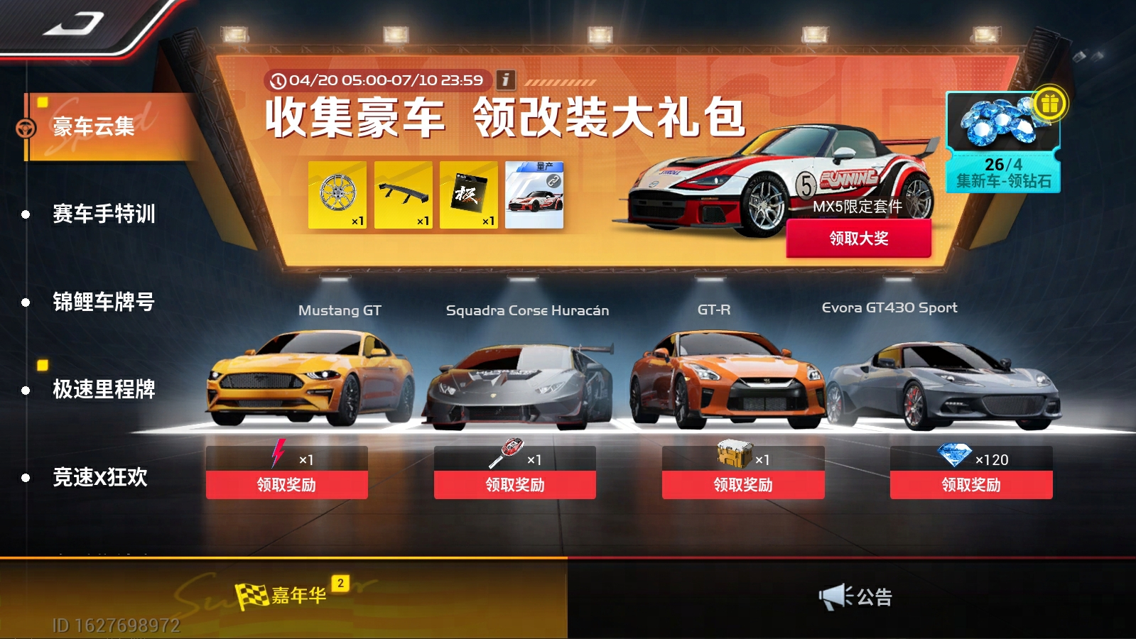 公测版本的各项福利获取也给车手们提供了超高自由度。大家可以选择跟随主线任务体验剧情,顺便拿下过万钻石、车钥、传奇豪车、精选外观套件等奖励,也可以自主探索游戏系统,比如逛一逛赛车学院、俱乐部或者藏车馆,每一处都有价值不菲的钻石与稀有套件。就连随手下载个游戏资源都不会让你空手回去,突出一个:玩上了还能兜着钻石走。