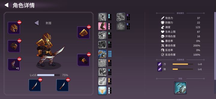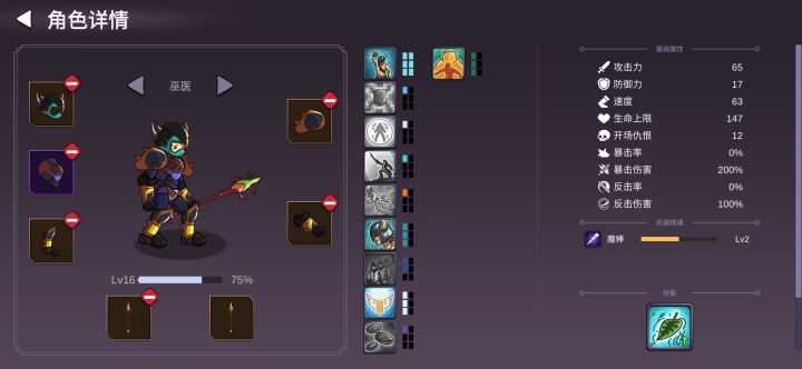 武器方面,在没有刷到专武之前,建议给蛮王装备任意斧类武器,因为剑类武器会让蛮王有几率反击,不方便用技能叠生命,直到专武出现再上专武。巫医前期也是随便用个魔棒就行,中期可以换成专武,后期建议换成那个加3次技能次数的金色魔棒,效果比专武还好。刺客前期随便装两把刀都行,后期换上两把眩晕刀,带你体验百分百眩晕的快感。游侠前期武器随便装,后期我个人建议选择每三回合加一层闪避的弓和攻击几次减对方一层魔力的箭,毕竟游侠被削得太拉了,专武弓腐蚀箭也多不了多少输出,何况输出有蛮王在,所以游侠装这个工具人套装负责抗伤害和打控制就行。