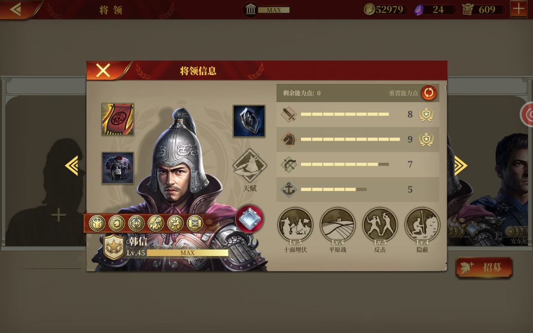 如图,我的资源集中在这两骑一步一弓上,汉尼拔真神自然不用说,史诗战争两遍登陆横扫野蛮人王加一大堆神怪军团,我这里稍微侧重了点生存,因为长期在人堆里输出,韩信,我第一个氪的将,也是第一个执政官和奥古斯都,带狮鹫征服帮忙占城,经过计算发现越王剑和戎装输出几乎无区别,把越王剑给了队里的三骑安东尼,还能给汉尼拔辅助,平常生存和常态输出都很高,日常难度不大的图我会给韩信精锐,虐菜高手,可惜天赋略有点逊,没有行军也没有暴击,但性价比确实很高。指挥官这边我选择的是步指,开号乱选的,后面买了两骑将就走步指了,主打一个生存辅助,征服腿长输出也不低,征六在垃圾地形里那速度碾压一众将领,配了比较高的吸血。与阿努比斯配合效果很好。米特拉达梯,我一般称“米叔”,为了玩的舒服就没有全带暴击(佛系玩家jpg.)但发挥很稳定,有时候一千多的暴击伤害瞬杀火龙荷鲁斯也经常给我带来惊喜,可惜的是不能升奥古斯都,我配的是秦俑因为起到一定的保护作用,而且独眼巨人没钱升了,刚把阿努比斯拉满(前期没注意宝石规划,只有独眼巨人和哥布林没升满),然后是其他将领,三骑安东尼,四骑霍将军,二弓给的屋大维,三弓用的开号买的老将李广(没钱再养一个弓将了),二步给到庞培,主生存能力,输出也不低,然后维钦托利和贝利撒留还没怎么养,庞培,安东尼,屋大维总督,荣耀之路也是总督,宝石资源实在有限,我买了宝石礼包,也氪了高级战令还是不够用,现在没事把没打的征服过一过,齐宣王打法试过征二的克拉苏,征四的帕提亚,还是有点挑战性,总的来说这是一个很优秀的游戏,希望加入更多样的模式,玩法,以及更好的外交系统,祝E社越做越好,顺便请教一下蛮王第二关的解法