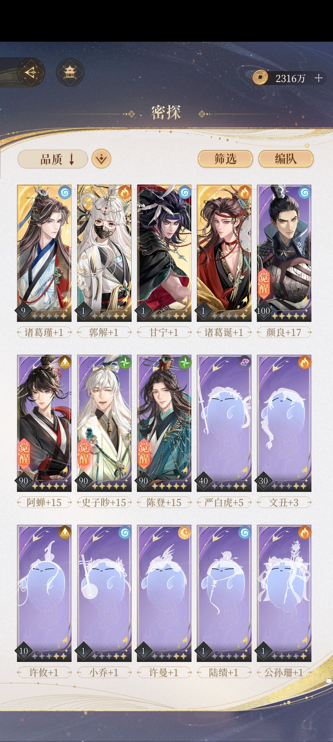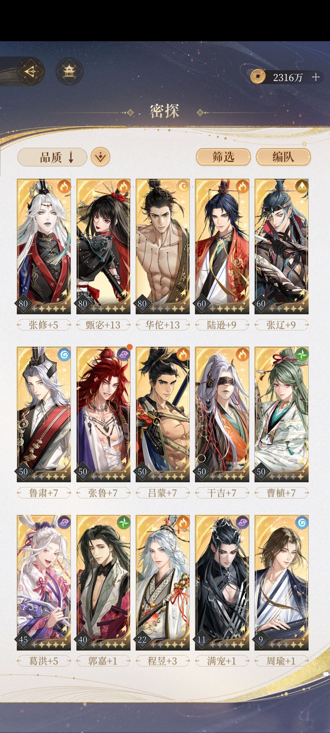 看到很多新人不知道应该养哪些密探,因为这个游戏资源紧缺,养错密探成本有点大,就想着大概写一下吧,密探养成推荐