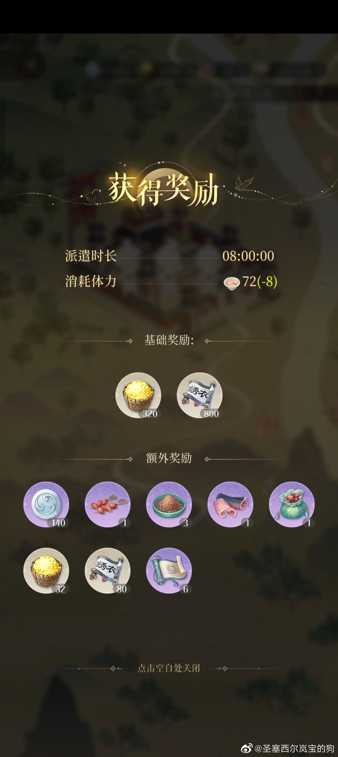 洛阳派遣☞获得鸟食-大量蒹葭低光荷等突破材料(除了50突破醉骨草只能体力刷)信赖突破材料(故事会+白金币)糖葫芦串(一个就是50金币)以及随机白色金币(我掉过120)☞性价比高得离谱!!
