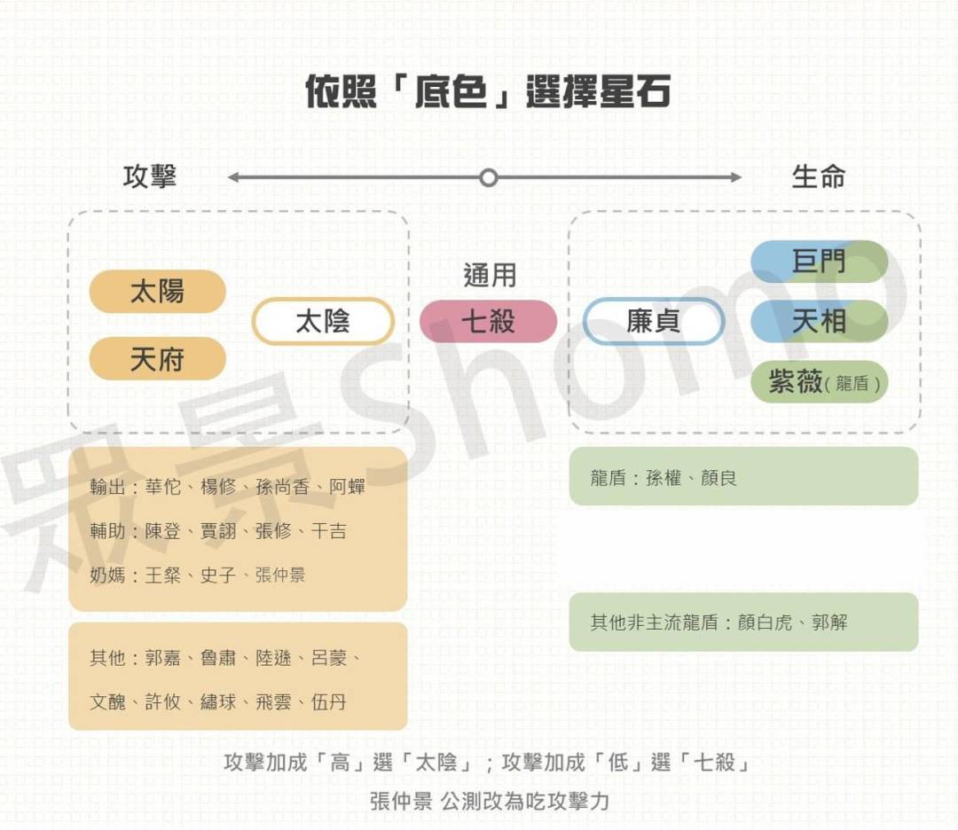 ①星石有共鸣效果,比如 紫微+天相☞伤害减免 太阳+巨门☞生命加300/400/500 (当你盾站不住的时候可以考虑用共鸣搭配)