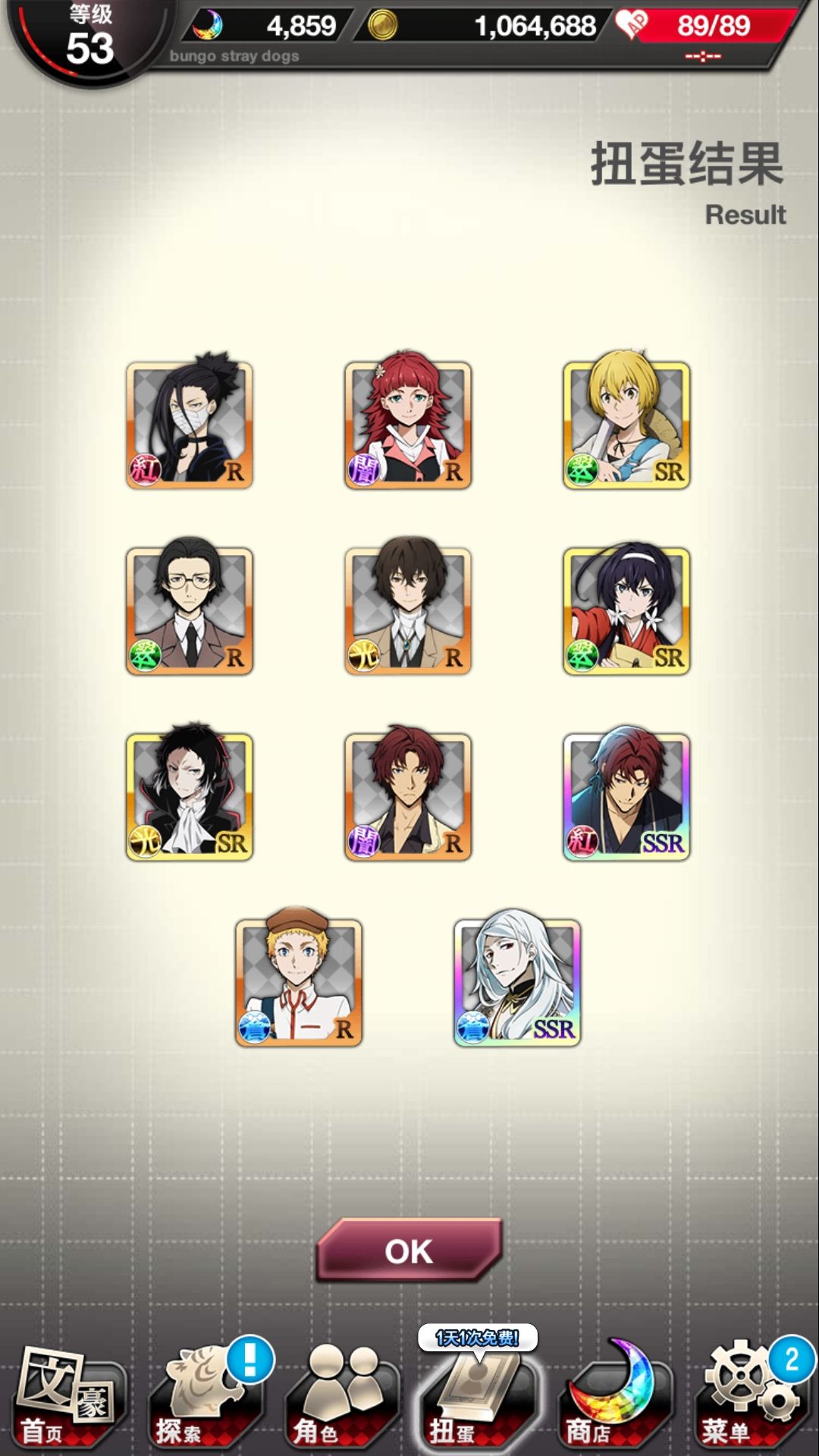 又出现了!!!!虽然step中全员都抽出来了但这种欧气我才不想要啊呜呜呜为什么中也每次都是保底最后一发出啊啊啊