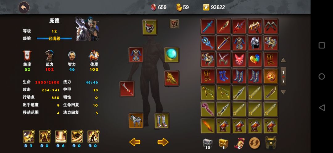 庞德:丈八蛇矛、龙鳞甲、血牙护面、神鹰令、夜明珠、的卢马(黑王马)、祥云鞋