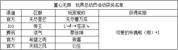 《世界OL》61儿童节活动获奖名单
