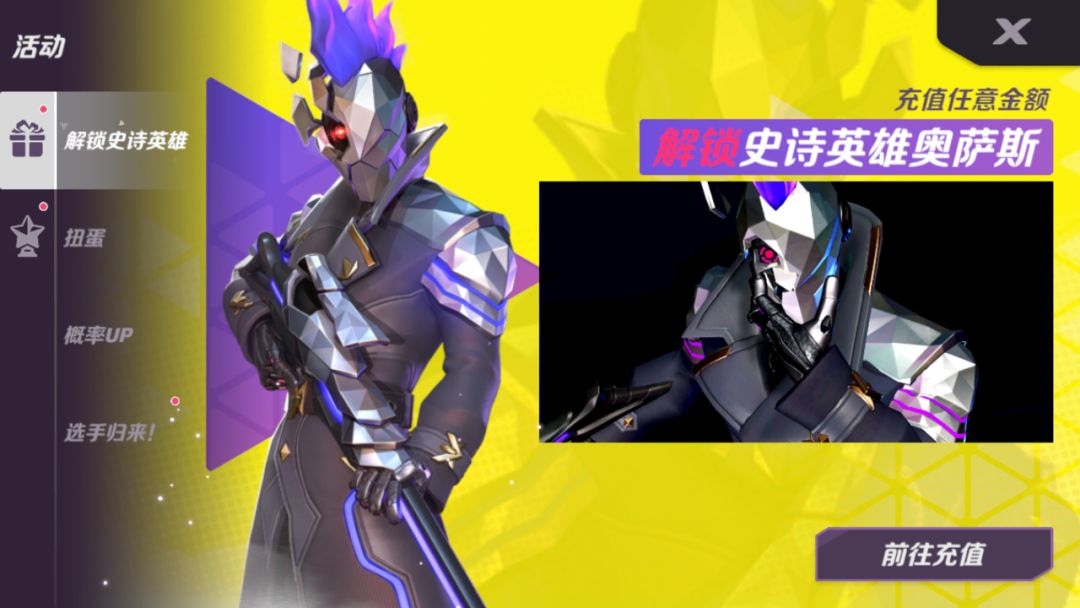 ■ 活动说明:首次充值任意金额,即可解锁史诗英雄【奥萨斯】。