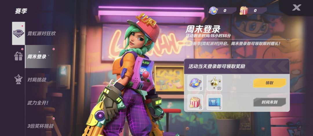 ■ 活动说明:周末登录游戏即可领取【爆米花】、【皮肤碎片】、【派对之星】、【能力核心】等丰富奖励。