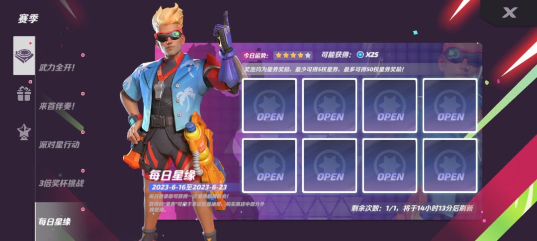 ■ 活动说明:每日登录可获得一次星缘翻牌机会,获得的“星券”可用于幸运轮盘抽奖,购买商店中部分外观使用。