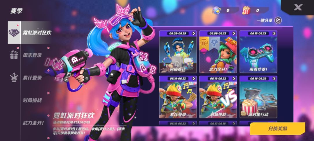 ■ 活动说明:参与【霓虹派对】主题活动,收集【派对之星】、【爆米花】兑换赛季限定好礼。