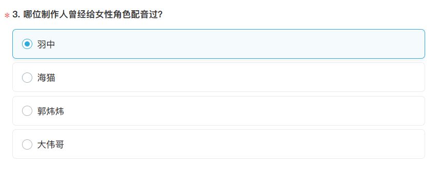 这题不会,我只知道海猫和大伟哥,他们好像都没这个实力给女性角色配音,所以我选了C,不会就选C是不对的。