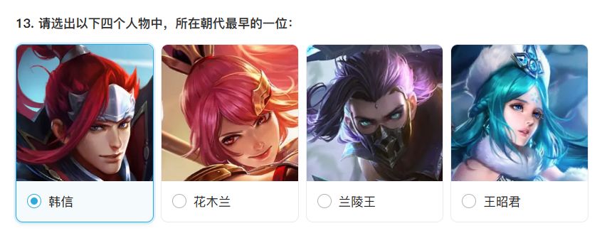 韩信是秦末,花木兰是南北朝,兰陵王是南北朝,王昭君是西汉