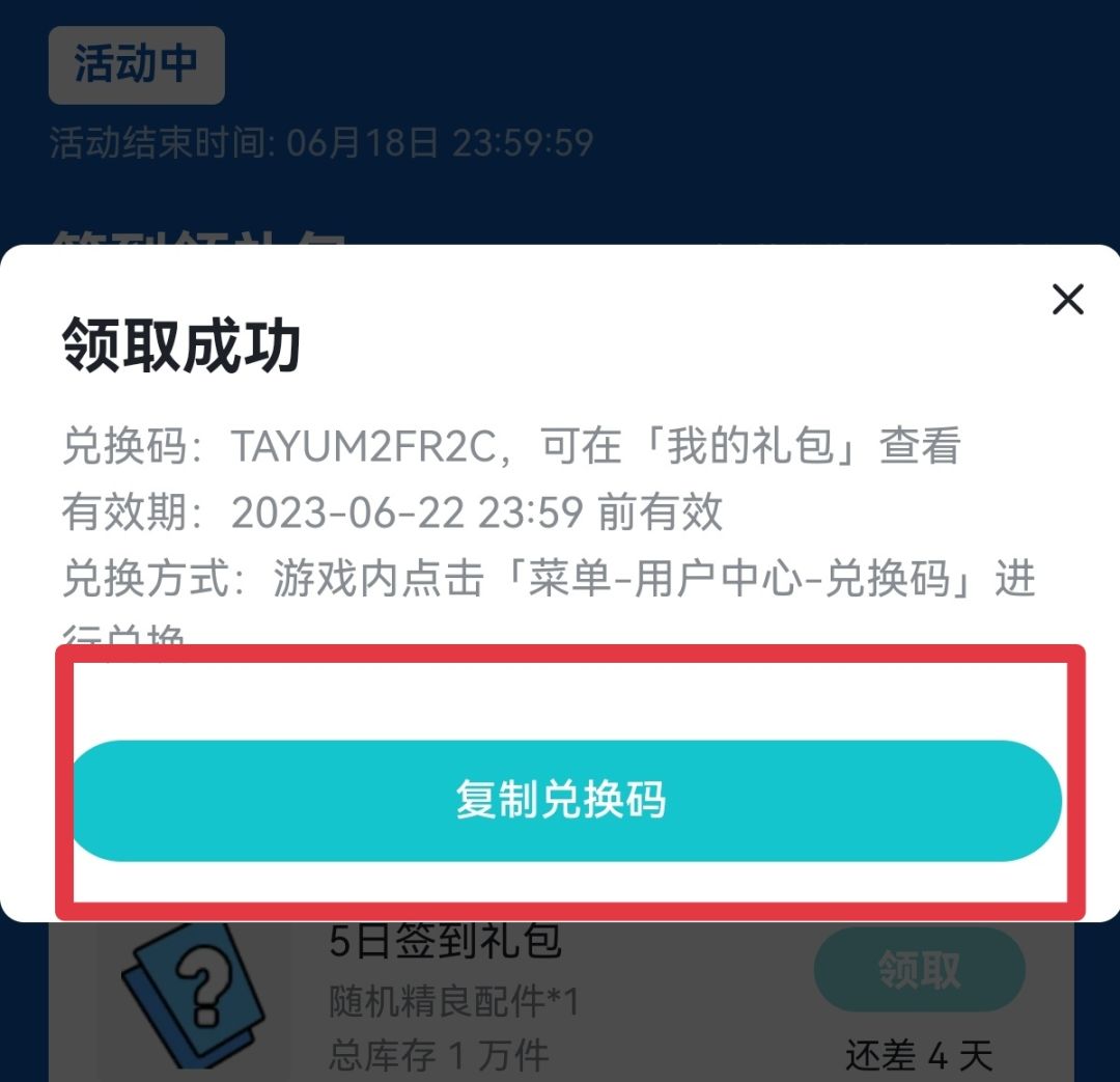 第三步:点击签到后可以领取对应天数礼包,点击【领取】。领取后页面会直接弹出礼包码,复制即可
