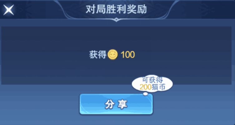 4. 对局分享,对局胜利后分享即可获得200猫币。