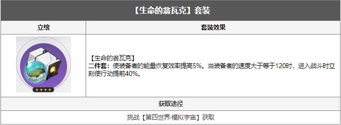 二件套则可以在泛银河商业公司和生命的翁瓦克选择,一个提升效果命中一个提升充能效率,可以根据玩家星魂数量选择。