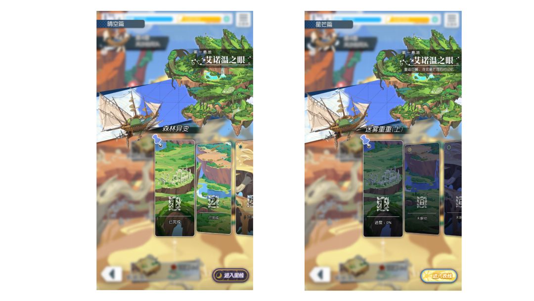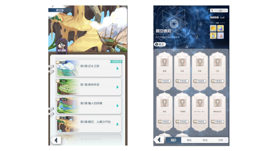 目前主线战斗关卡「晴空之路」:表线(白昼)已开放至第十五章-铃声为谁而鸣,里线(黑夜)已开放至第十一章-远古的冰火(下)。
