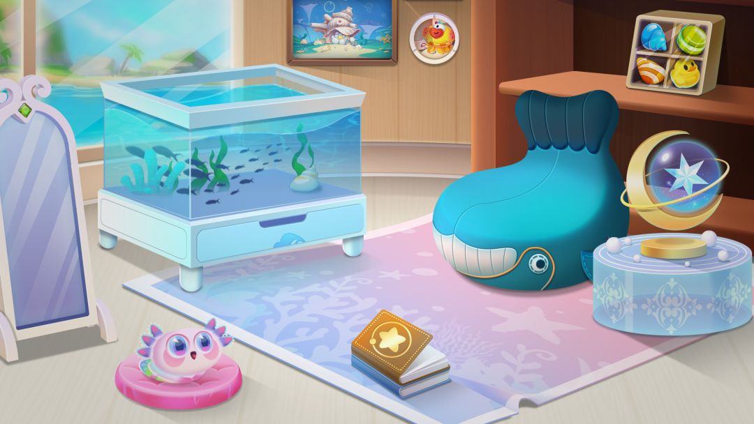 每当流星划过萌鱼星球的时候,泡泡都会在许愿池投下一枚许愿币!