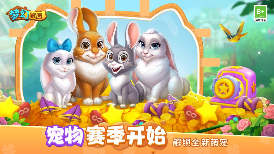 可爱的兔子再次来到家园,这次一定要留住它们!解锁黄金券就能获得可爱的罗宾兔和玛莎兔还有精美的兔子窝等丰富道具等待主人抱回家装饰家园~