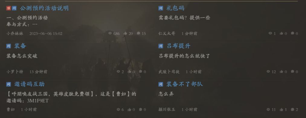 在这里主公可以查看其他玩家发布的攻略内容,游戏上手快人一步!