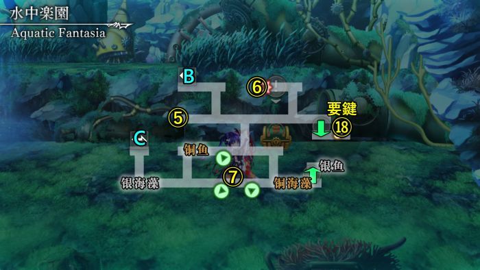 6、在地图左方咬开金海藻。7、从地图左方E口处进入“区域6”。