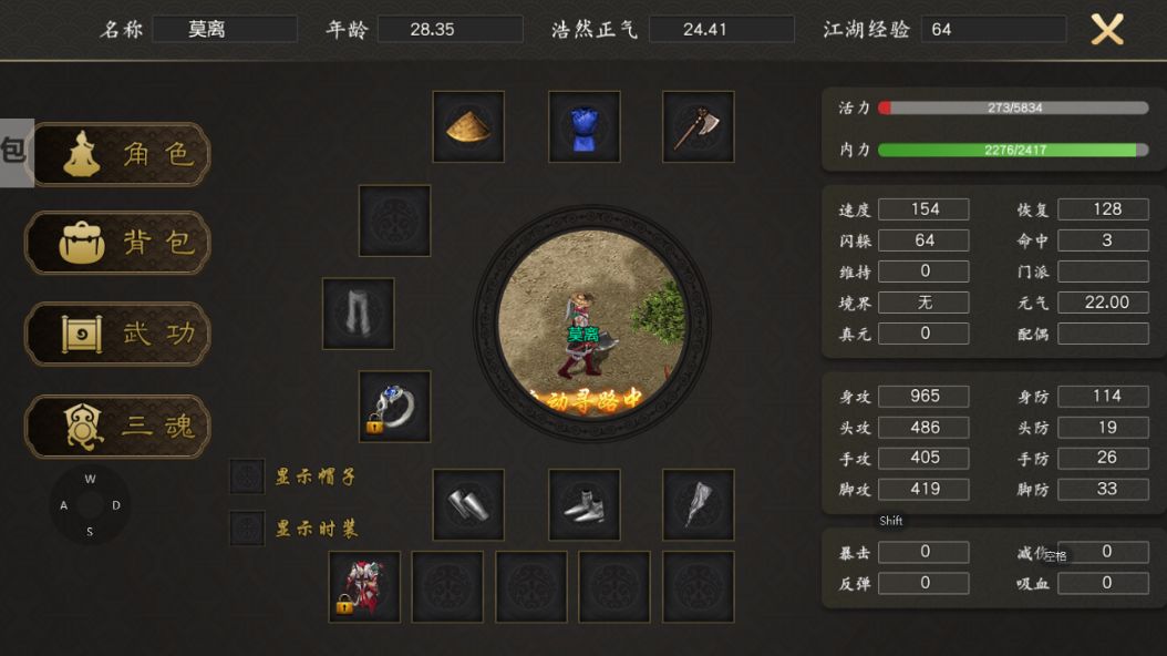 1、击败3只鹿(这里推荐将无名槌法设置到快捷栏,时不时用一下,因为这个游戏特殊的武功练级机制,它的武功属性不是实时刷新的,需要再次使用武功才可以刷新正确的属性。