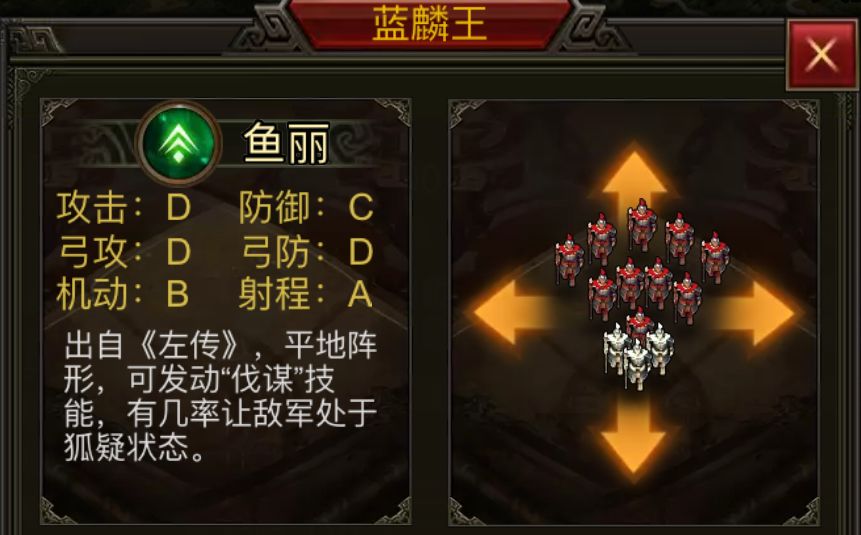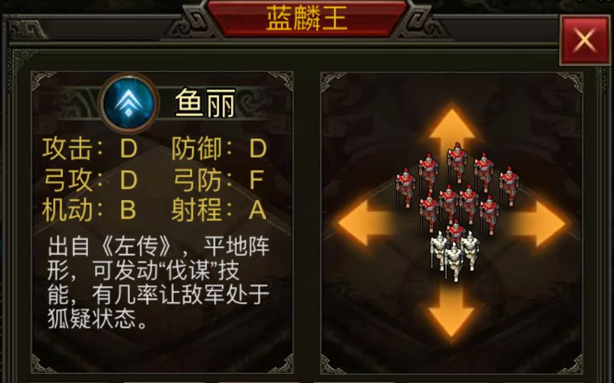 阵形属性:伐谋(有几率让敌军处于狐疑状态)
